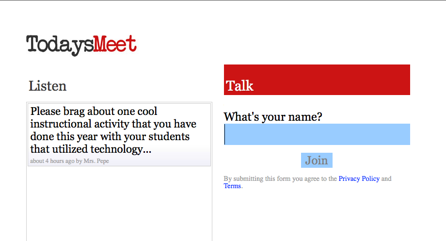 When working with teachers in a PD setting allow them to celebrate their successes. Use this qr visual/code to scan to a room in Today’s Meet where each teacher can share one thing that they have done in their classroom with technology that they are proud of.
