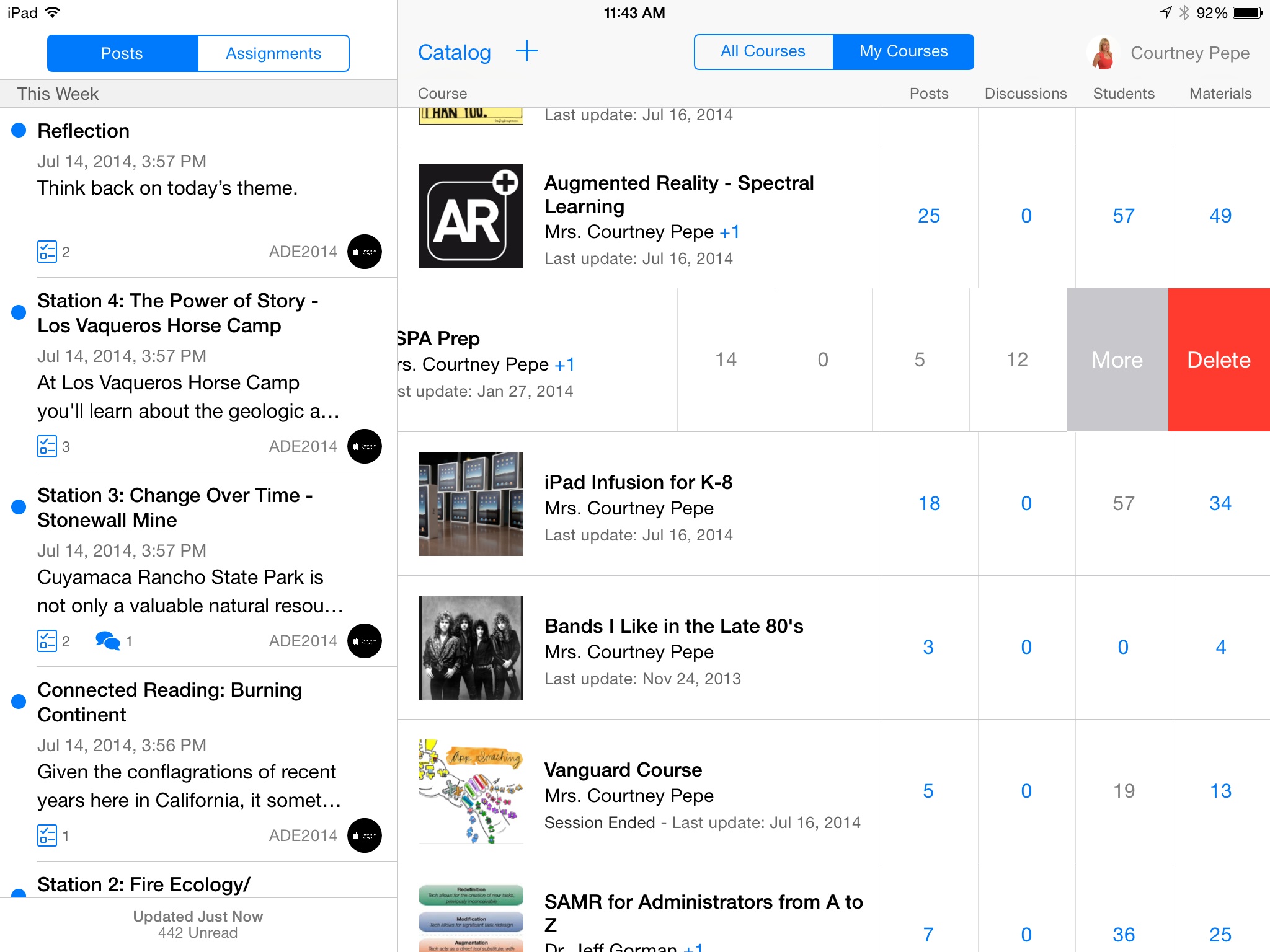 Choose the public course you wish to copy and execute a one finger swipe to the left to reveal the grey more button and the red delete button.