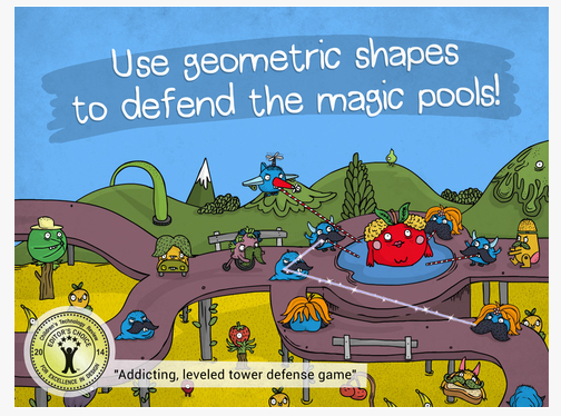 Those of you who are fans of this blog know that I like to emphasize the power of play. Land of Venn takes a great approach to learning that supports student metacognition. It takes a unique pedagogical approach which combines two theories behind the teaching of math education. The first of these is Van Hiele’s Level of Geometric Thought which targets the high levels of Bloom’s Taxonomy by requiring that the child analyze the shapes as opposed to just remembering or recalling them. The students will understand the hierarchy between the shapes instead of being locked into remedial patterns. The second theory behind this game is the notion of “Gameducation” where the learner is not passive but actively engaging in the content. The student is so engaged in the game that they have the chance to practice the principles of geometry with intense focus and repetition as they analyze and apply them in a constantly changing situation.